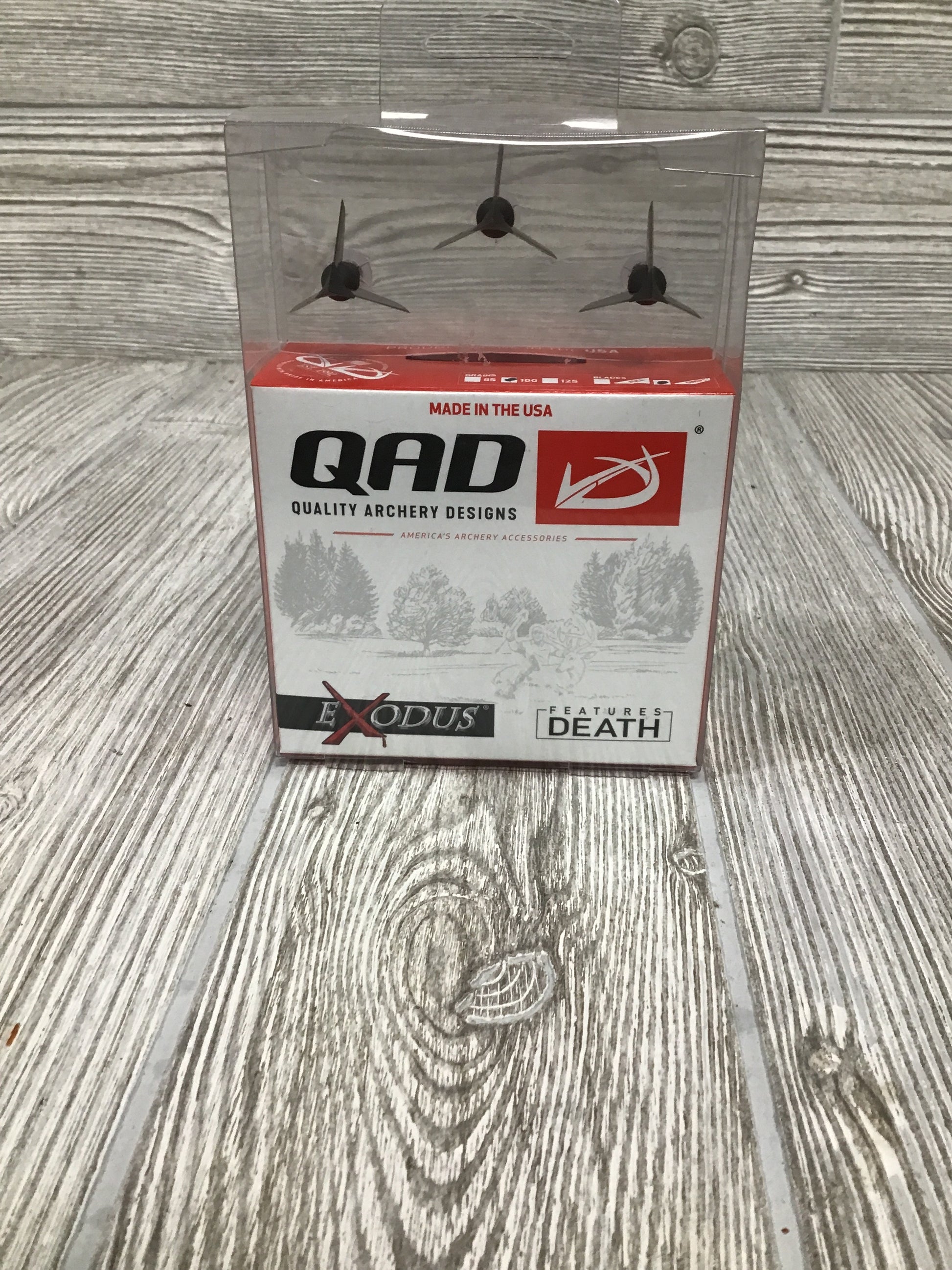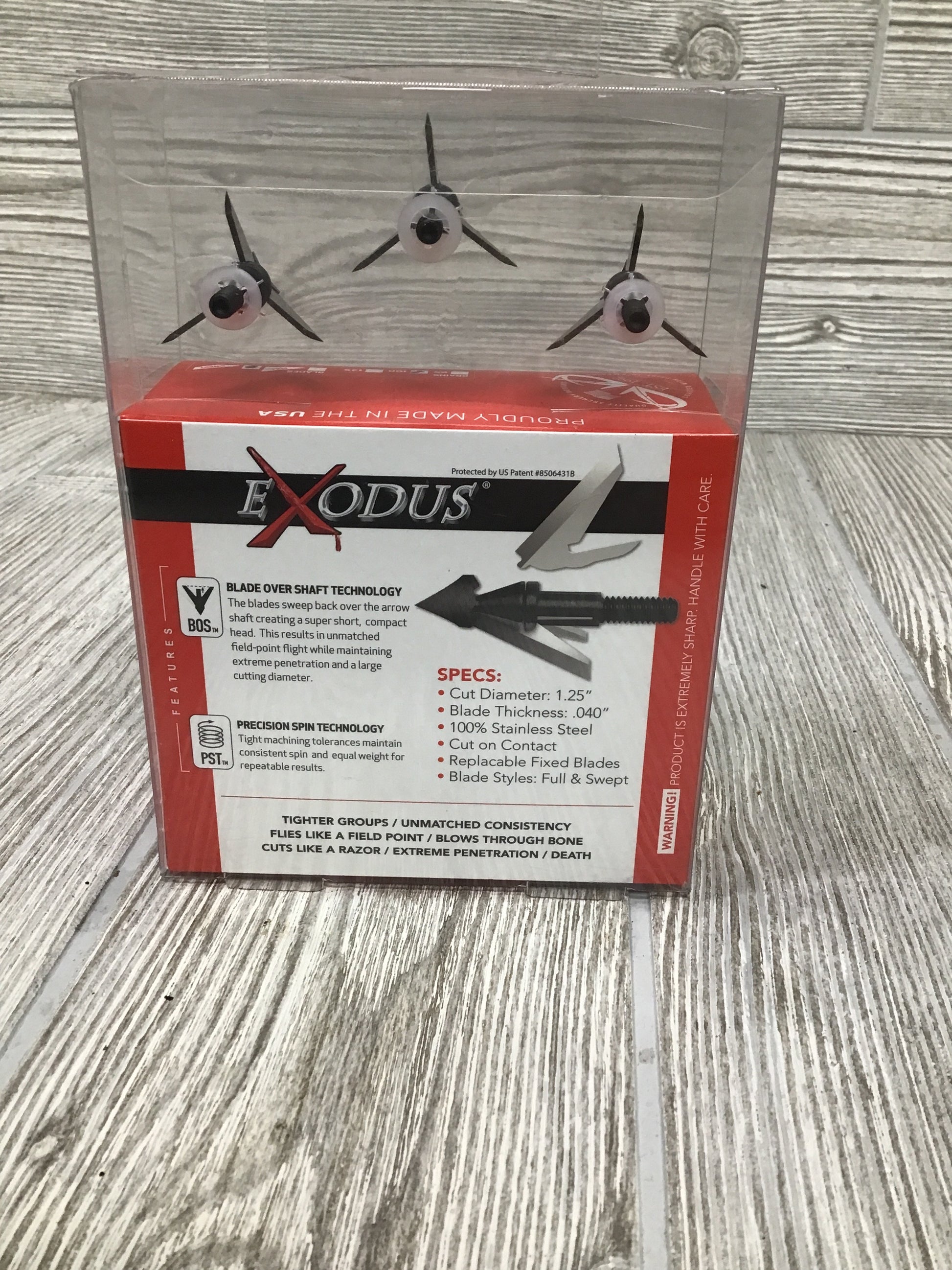 Exodus broadheads are 100% designed and manufactured in the good ol’ USA. The revolutionary compact head gives it the strength to bust through the toughest bones. By matching the length of a field point, the Exodus achieves accuracy never before experienced from a fixed blade. With razor-sharp, durable blades and a steep cutting angle, the Exodus tops the broadhead market in penetration. With heavy duty SST material, you never have to worry about the blades holding up as they bust through and knock down the biggest animal you dare to challenge.