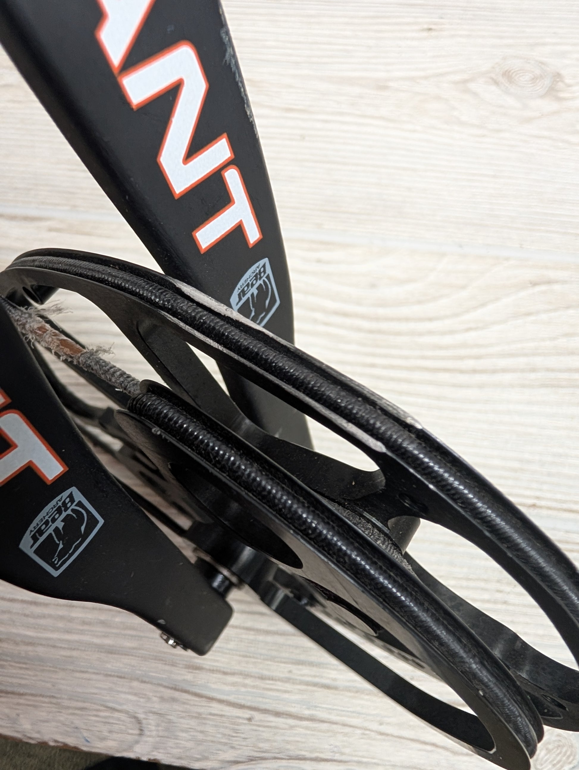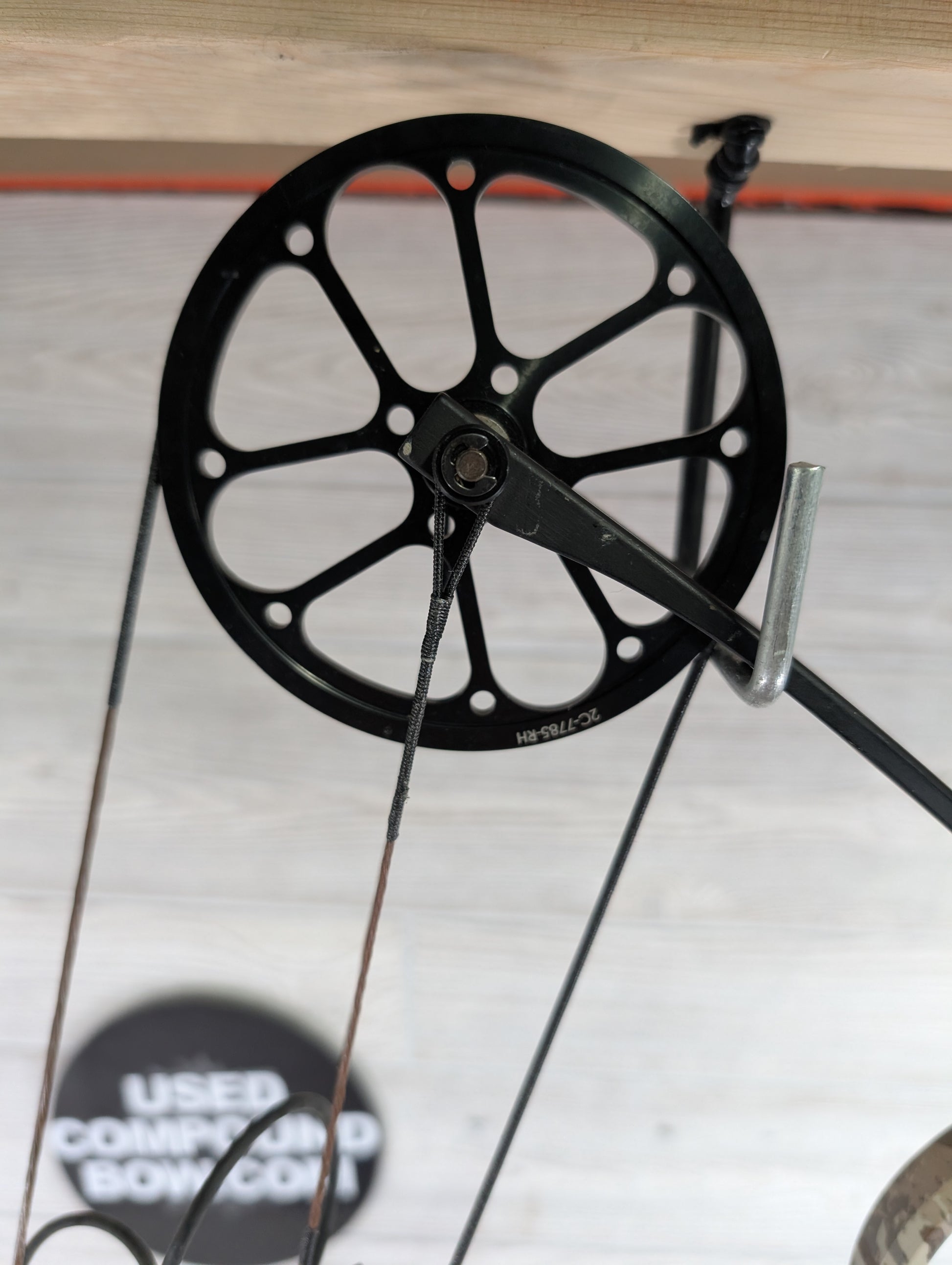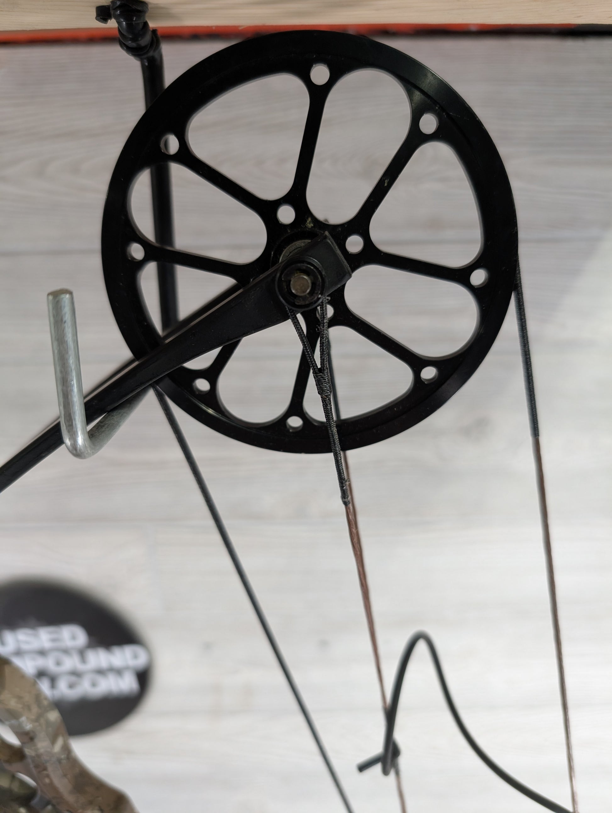 STRING CONDITION: Strings and cables are in used condition. Cable on bottom cam has some serving damage. Cable itself is intact, only the serving appears to be chewed up.