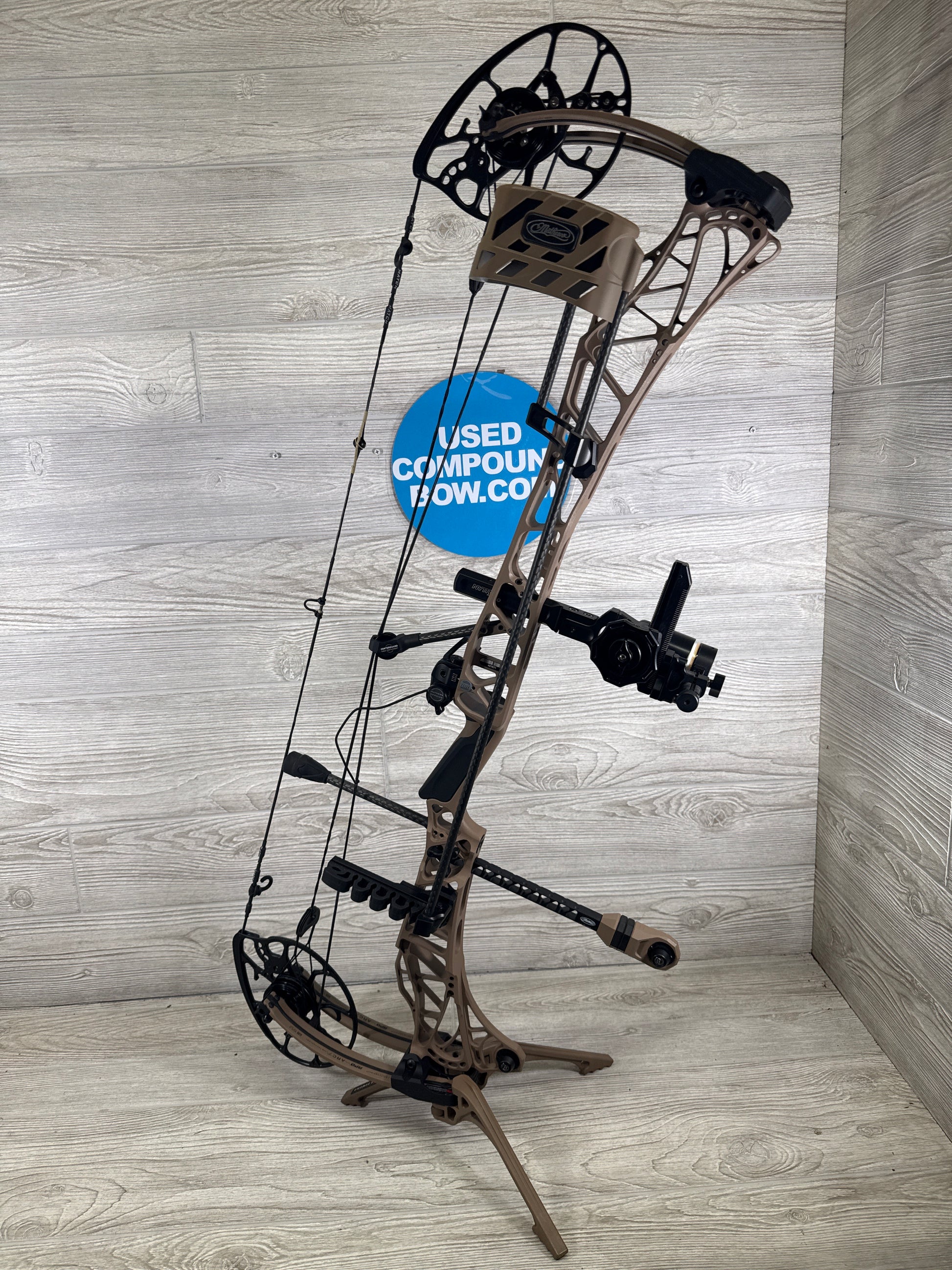 Bow Comes With: Mathews EXO limb legs, Mathews Lowpro detachable earth Quiver, mathews qad mx2 rest , Mathews 8" Bridgelock stabilizer, HHA nytrx pro double up pin Sight, Peep Sight and d-loop. And bond taper earth grip