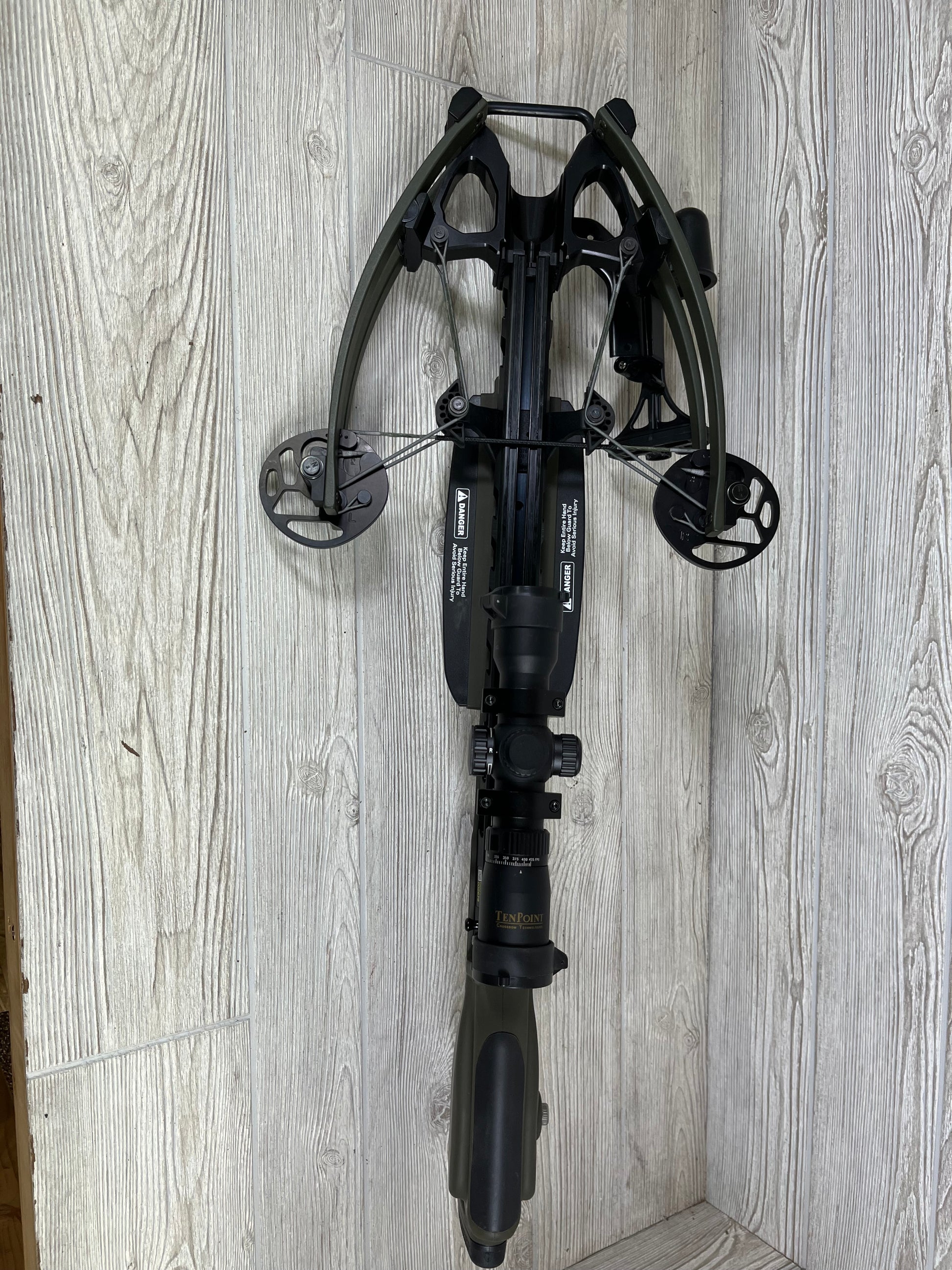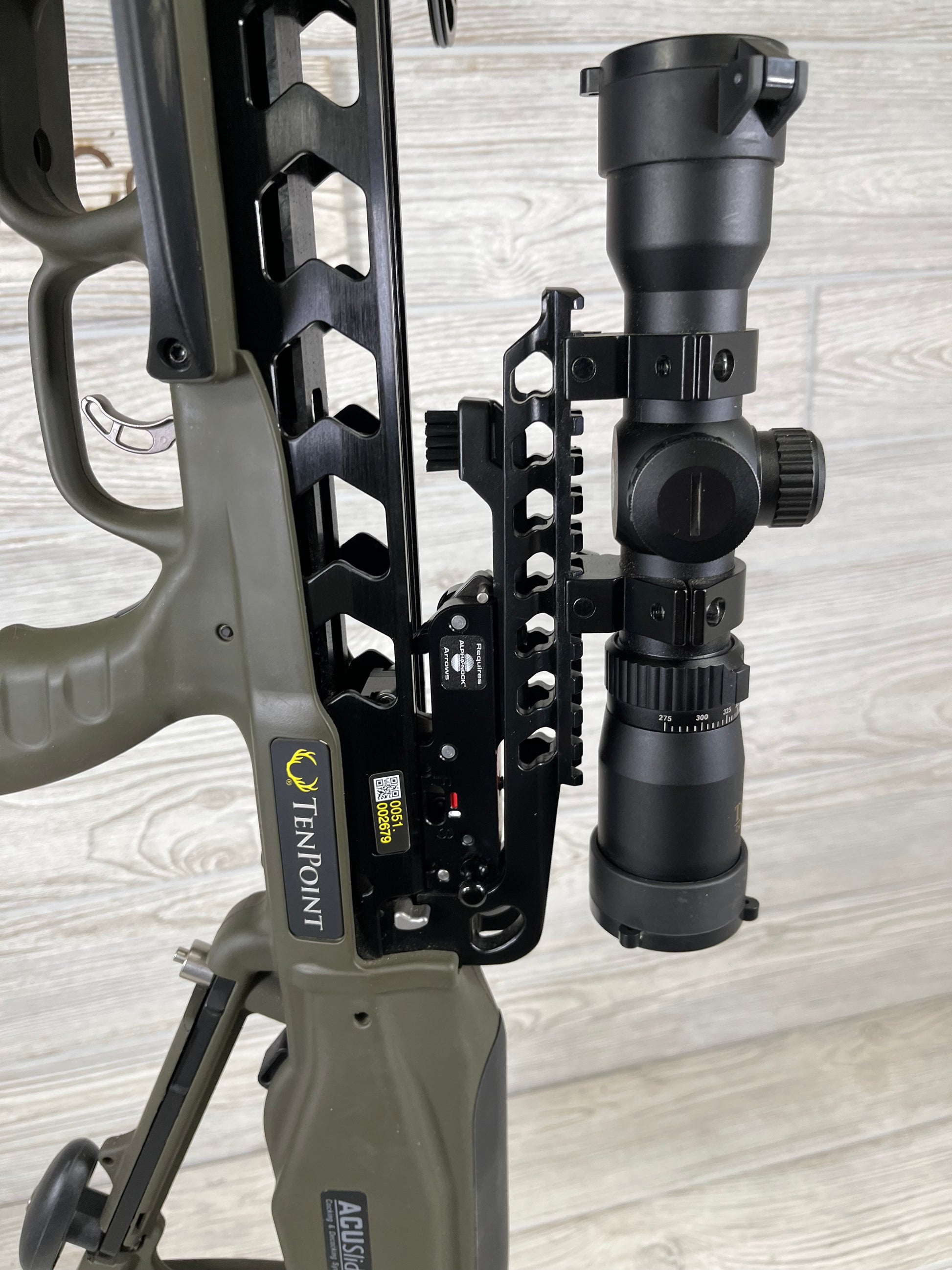 Illuminated Scope, acu-slide system, quiver, crank handle.